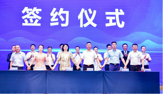 河北省重庆商会会长蒋兴贤、重庆市侨联副主席、重庆华商华常务会长张健、海南省侨商会执行会长赵思远以及海南省重庆商会监事长戴青树、常务副会长何娟、常务副会长张安平签署友好商会合作协议。